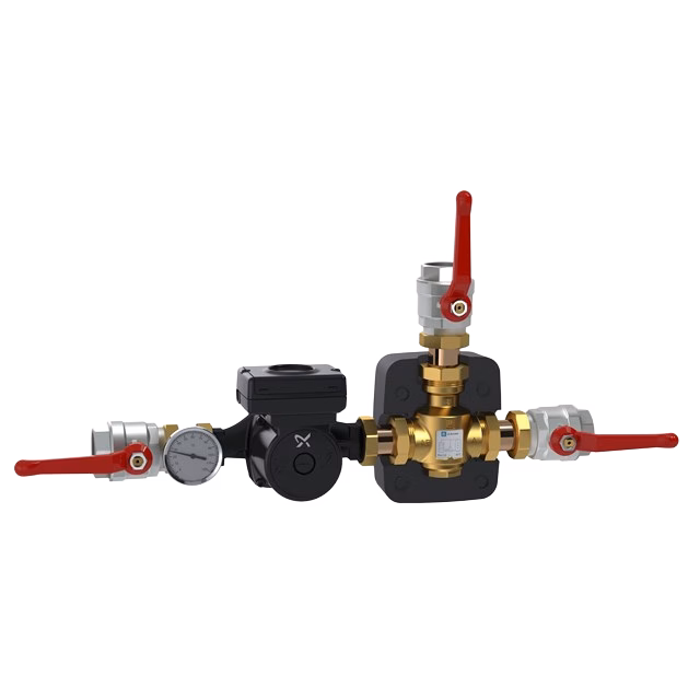 LK 815 ThermoKit T consists of a low-energy circulating pump, an LK 823 ThermoVar thermic loading valve with insulation, a check valve, a thermometer for reading return temperature and three ball valves to simplify installation and maintenance. The loading group is reversible and can easily be adapted for mounting to the right or left of the boiler. Thanks to the three ball valves any part can be changed without draining the system, if the need for servicing arise.