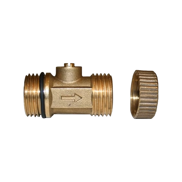 The valve fits with direction of flow as indicated by the arrow. Male thread connection. Connections can be used for 15 mm compression fitting. The thread is sealed in the usual way.
